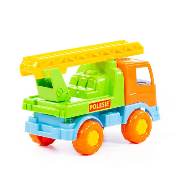 Nákladné auto požiarne s vysúvacím rebríkom bez pohonu, vhodný na hru do interiéru aj na piesok, certifikovaný pre deti od 1 roku veku. Farebnú kombináciu konzultujte podľa aktuálneho stavu na sklade.
