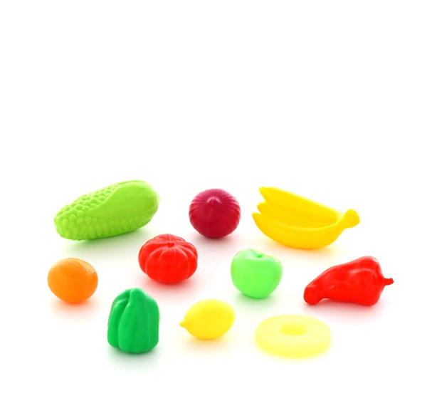 Súprava potravín ovocie. V balení je 10 ks ovocia a zeleniny, kukurica je 8,5 cm veľká.