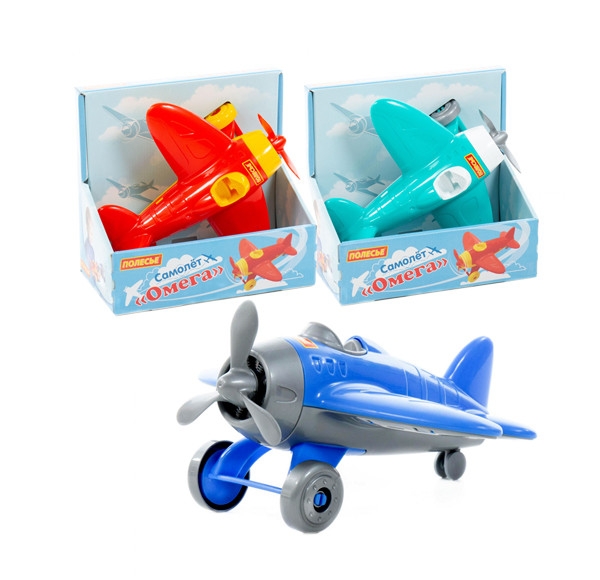 Lietadlo Omega je 23 cm dlhé s rozpätím krídel 24 cm, je bez pohonu s voľne sa otáčajúcou vrtuľou, v ponuke je v 3 farbách.