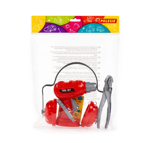 Súprava náradia č.21 s AKU skrutkovačom. V balení v sáčiku je skrutkovač AKU č.1 červený, je 12 x 12,5 cm veľký s vrtákom v balení. Potiahnutím kohútika sa mechanicky otáča hlava skrutkovača. Je tu tiež chránič sluchu a kliešte. Je vyrobená z pevného plastu od Wader-Polesie a pre svoju odolnosť je vhodná aj do materských škôlok.